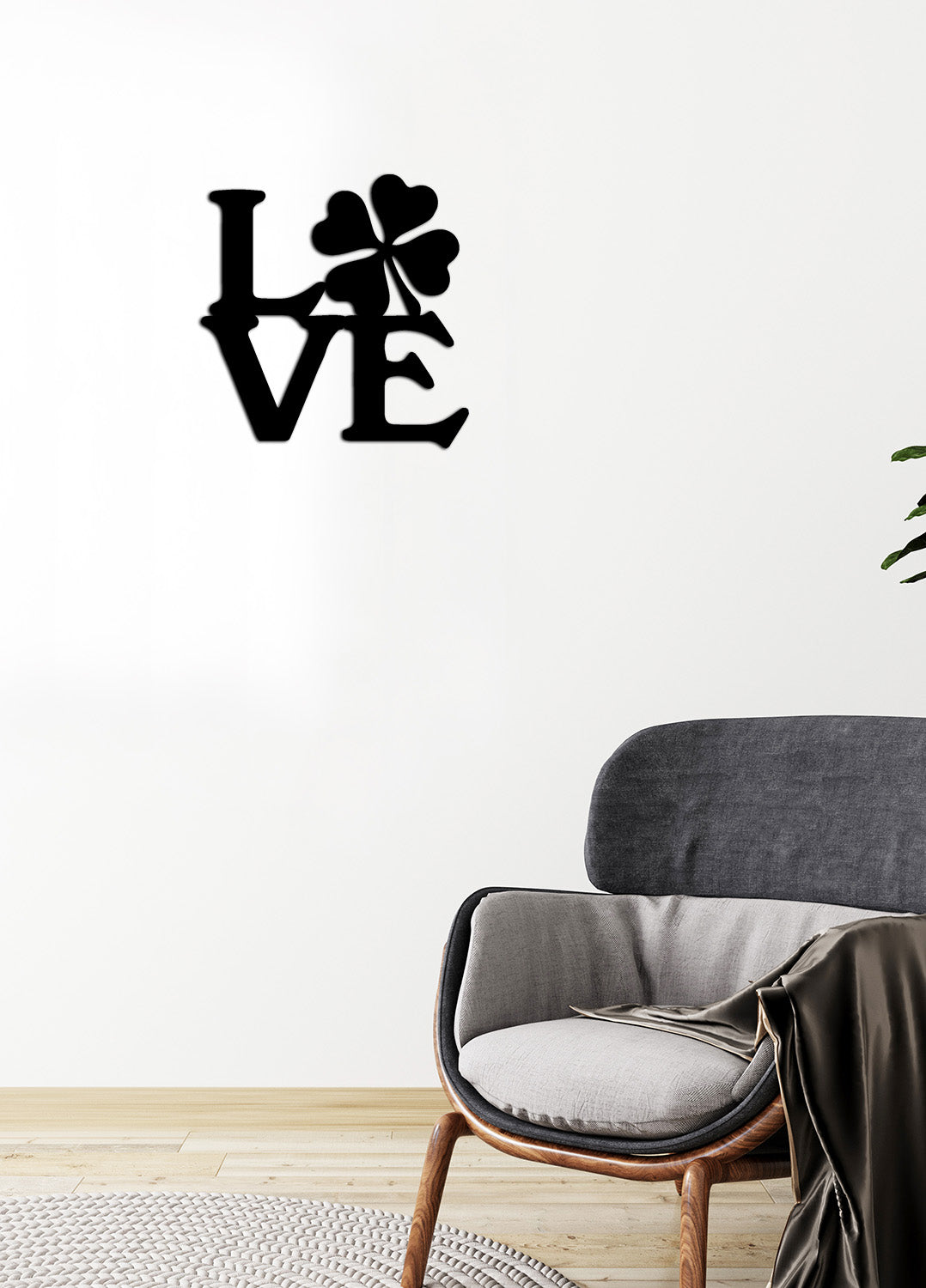 Yonca Detaylı "LOVE" Metal Tablo | Fortune Serisi
