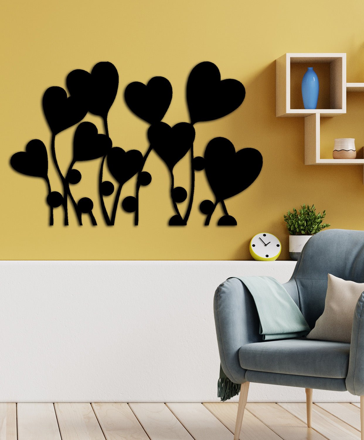 Çiçekli kalp tasarımı; yatak odaları, modern mutfak alanları veya ferah salonlar için mükemmel bir aura düzenleyicidir. Tasarımın sunduğu organik ve dengeli duruş, mekana anında "huzurlu ve nefes alan" bir ev hissi verir.