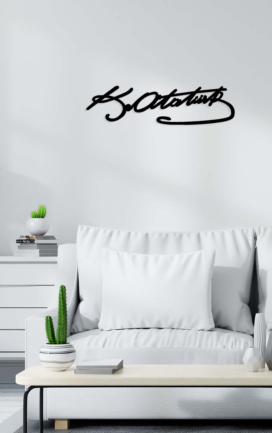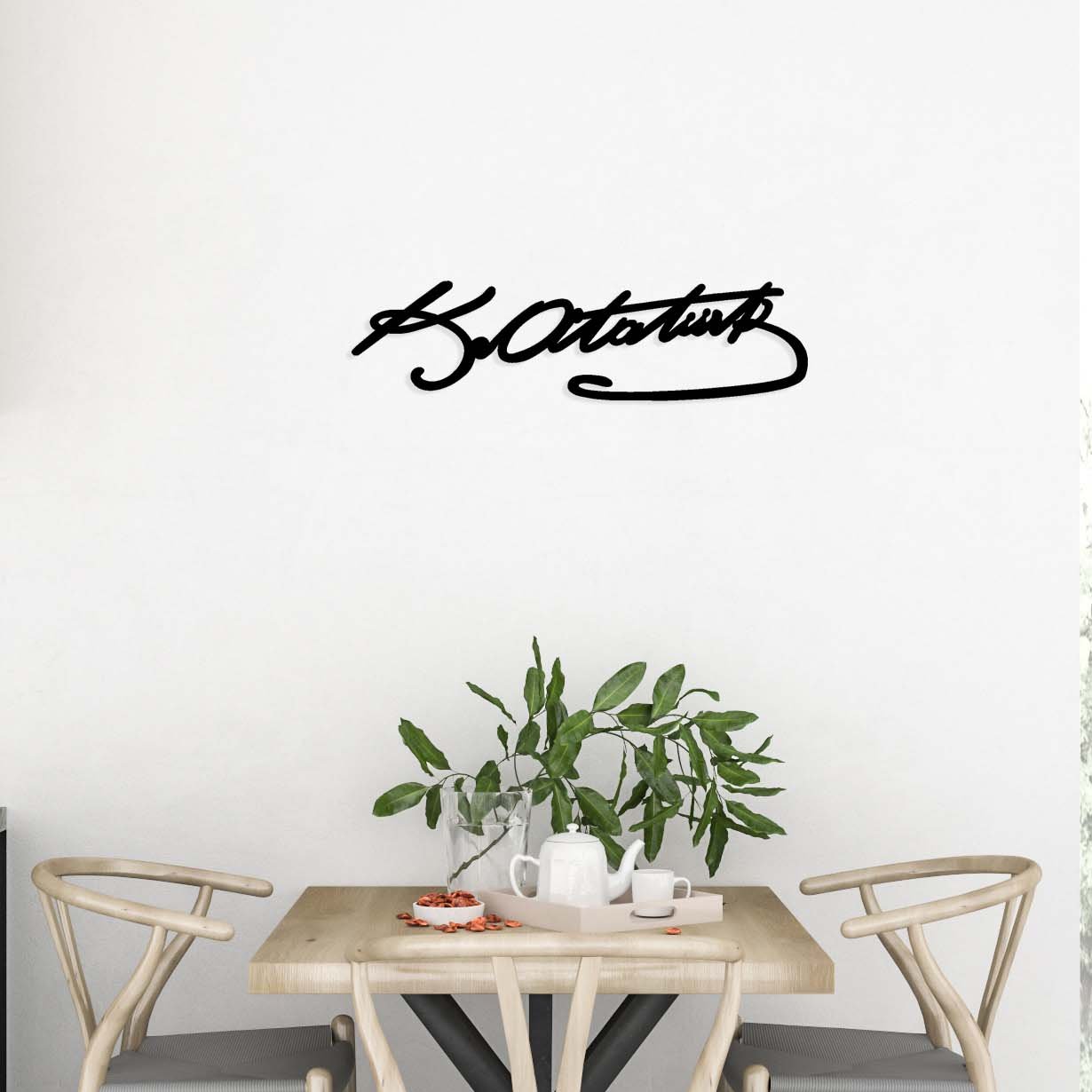Atatürk Metal Duvar Tablosu - K. Atatürk imzasını temsil eden minimalist çelik dekor.