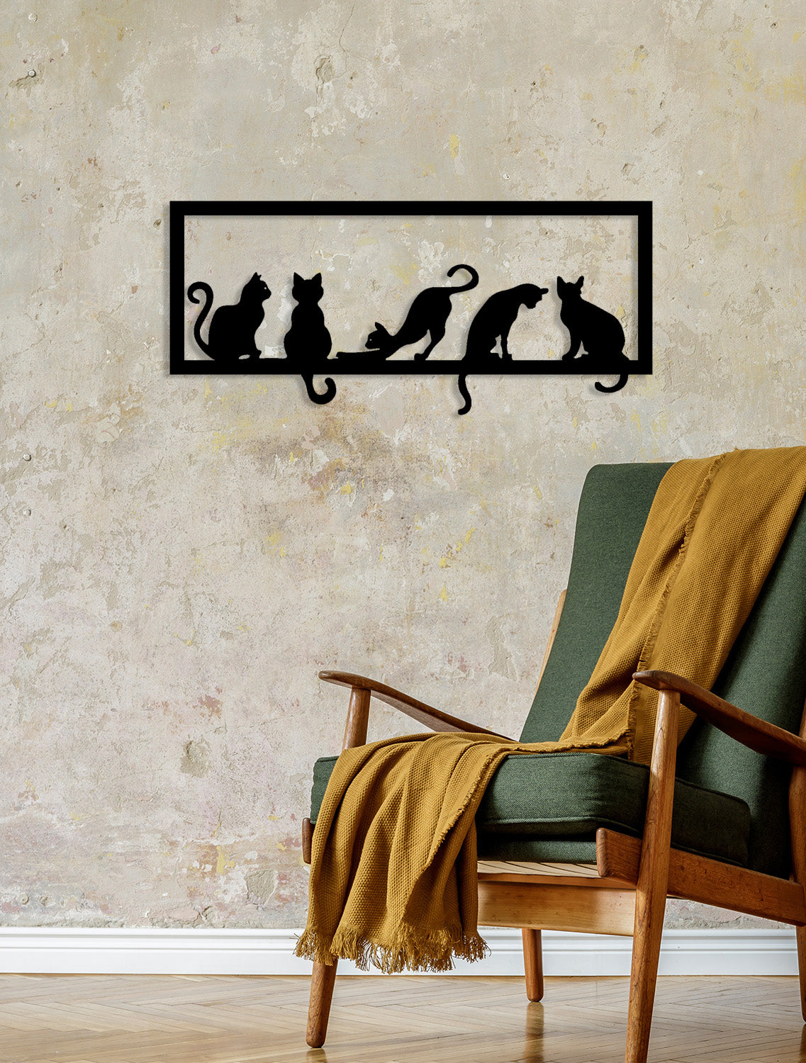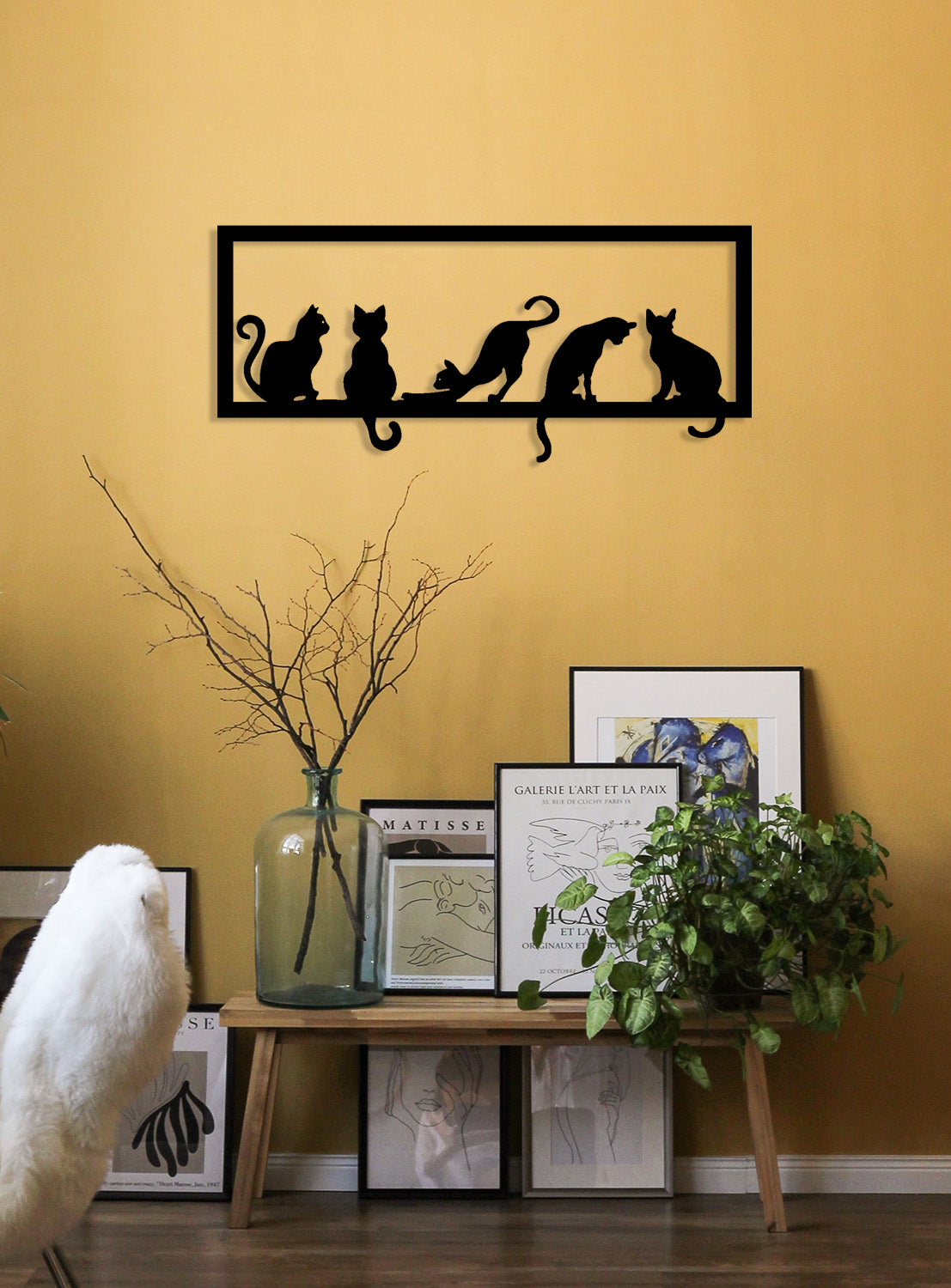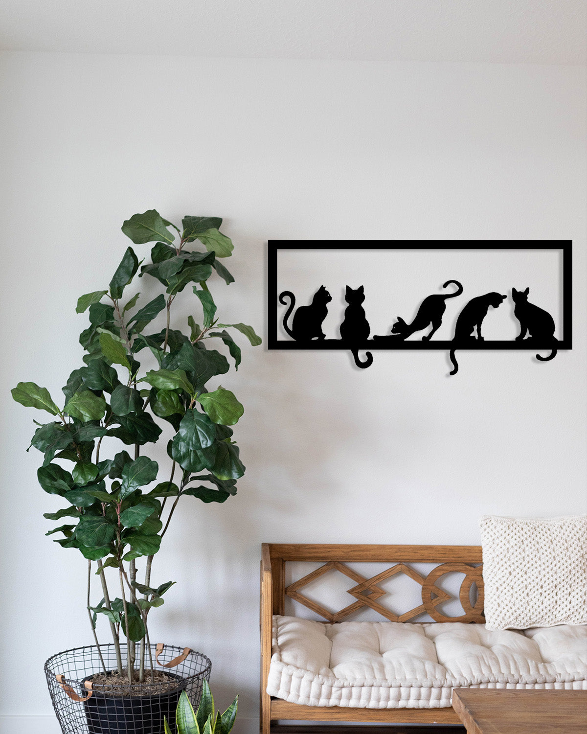 Çoklu kedi tasarımı; geniş salon duvarları, antre girişleri, mutfak bankolarının üstü veya kedi köşeleri için kusursuz bir aura düzenleyicidir. Tasarımın sunduğu yatay ve ritmik duruş, mekana anında "rafine, huzurlu ve hayat dolu" bir hava katar.