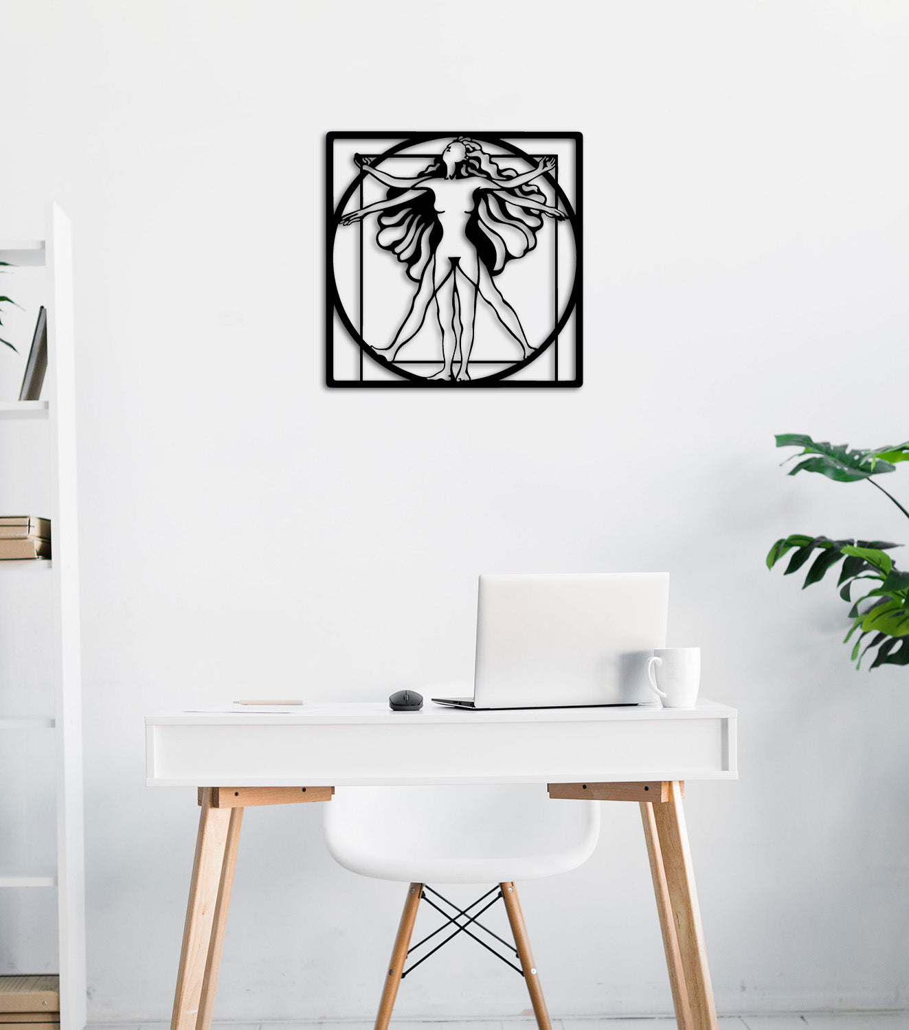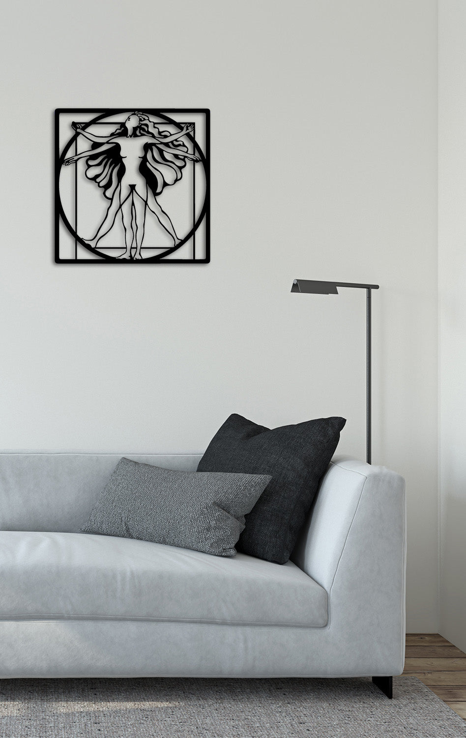 Vitruvius Adamı'nın rasyonel hatlarını vurgulamak için tabloyu çalışma odanızda, kütüphanenizde veya mimarlık ofisinizde sergileyin. Siyah metalin keskinliği, mekana analitik bir derinlik ve prestij katar.