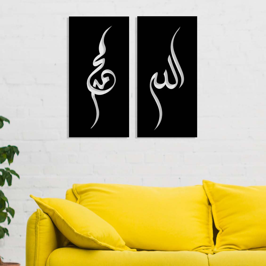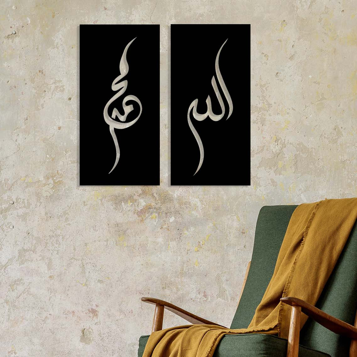 Allah ve Muhammed İslami Metal Duvar Tablosu Seti