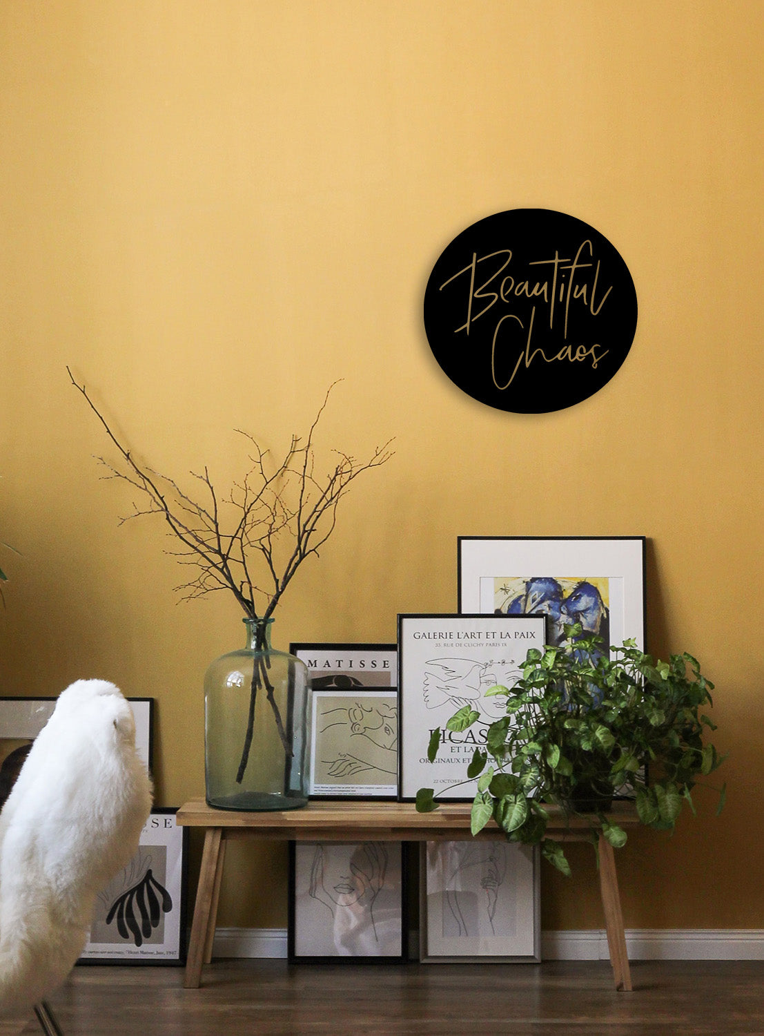 "Beautiful Chaos" yazısı; hareketli oturma odaları, modern mutfaklar veya genç yaşam alanları için mükemmel bir odak noktasıdır. Tasarımın sunduğu çift karakterli duruş, mekana anında "karakterli ve özgün" bir aura katar.