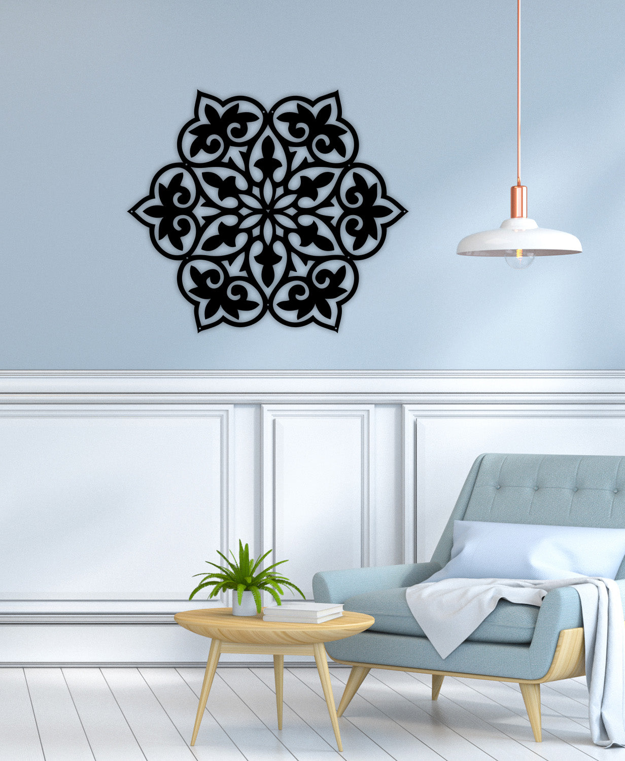 Aura'nın radyal simetrisi zihni sakinleştiren bir etkiye sahiptir. Yoga köşeleri, yatak odası başlıkları veya dinlenme alanlarında kullanıldığında, mekana anında huzur veren bir duvar dekorasyonu atmosferi kazandırır.
