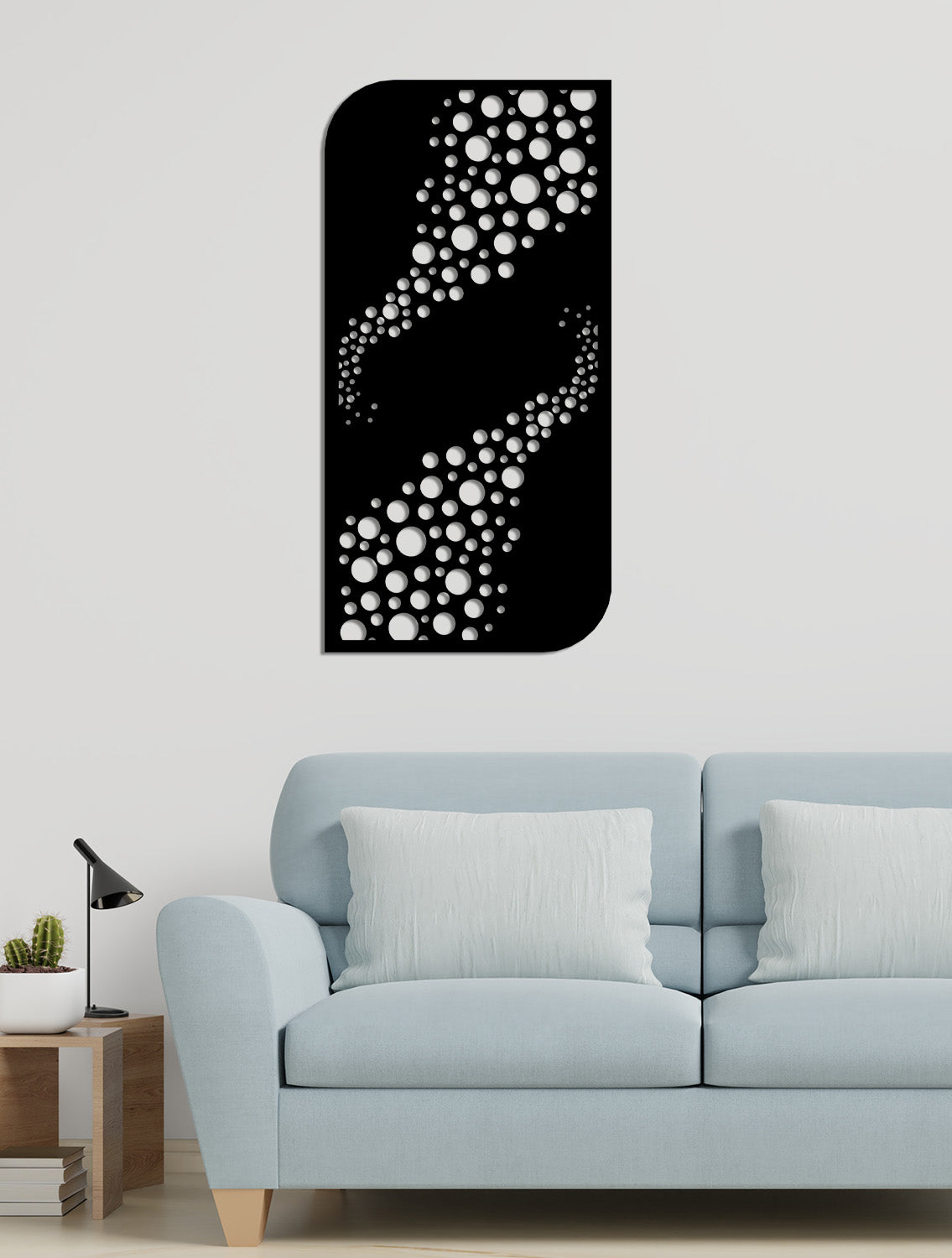 2 cm derinlik payı ve geniş boşluklu yapısı sayesinde, ışık bu panonun içinden geçerken duvarda onlarca farklı boyutta dairesel gölge oluşturur. Bu 3D metal duvar sanatı, akşam ışığında duvarınızda hareketli bir "derinlik portalı" illüzyonu sunar.