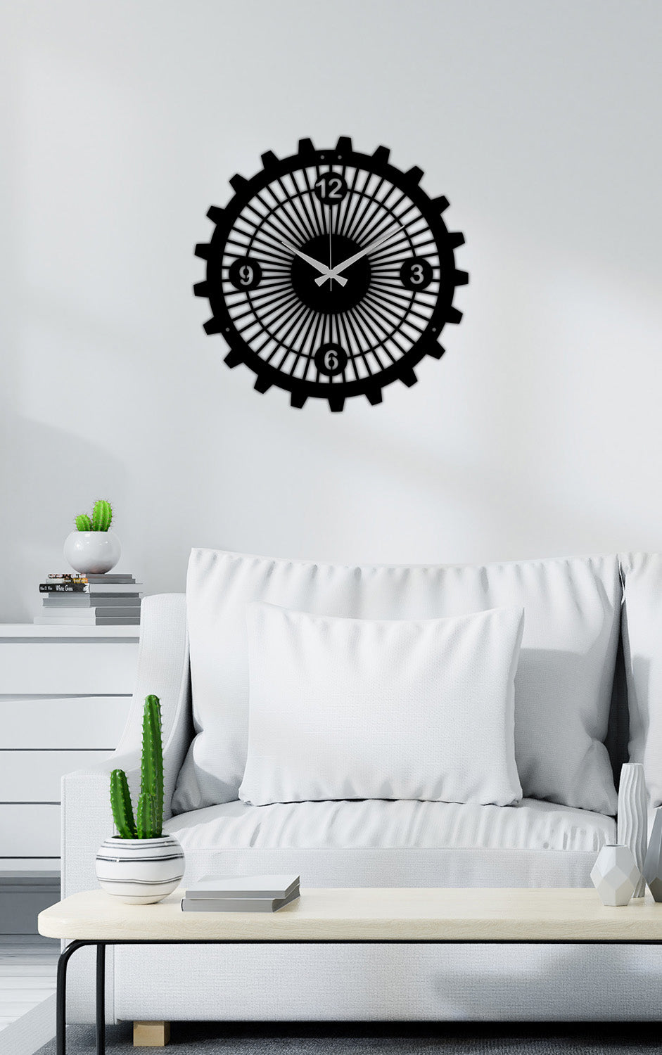 Mechanical Prime'ın çark formunu vurgulamak için saati beton dokulu, tuğla desenli veya açık gri duvarların merkezine asın. Mat siyahın keskinliği, bu endüstriyel yüzeylerde muazzam bir otorite ve karakter yaratacaktır.