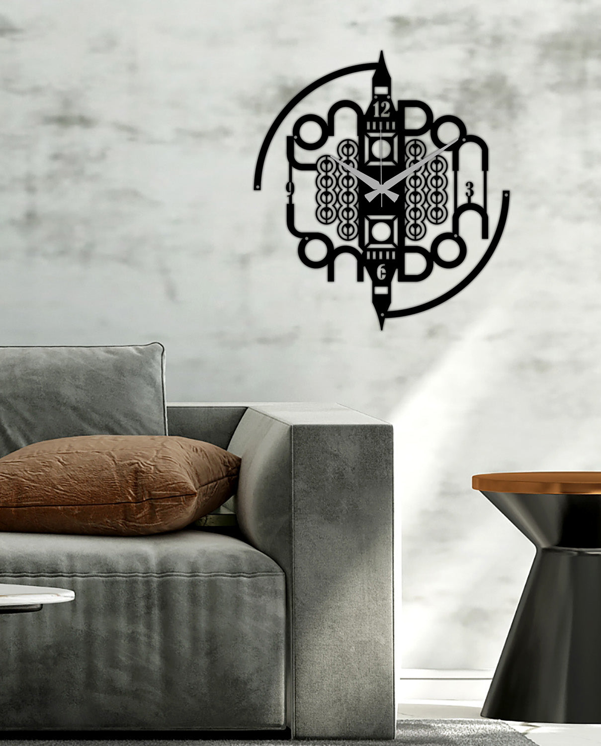 Ürünün yüzeyini kaplayan mimari tekstüre toz boya, ipeksi matlığıyla parmak izi bırakmazken, metalin endüstriyel gücünü premium bir estetiğe taşır. 1.5 mm mukavemetli çelik gövdesi ve sessiz (Silent Sweep) mekanizması sayesinde, Londinium zamanın akışını gürültüsüz bir asaletle sunar. Duvardan 2 cm önde duran yapısı, Londra silüetinin arkasında yaşayan gölge katmanları oluşturarak gerçek bir 3D metal duvar sanatı deneyimi yaşatır.