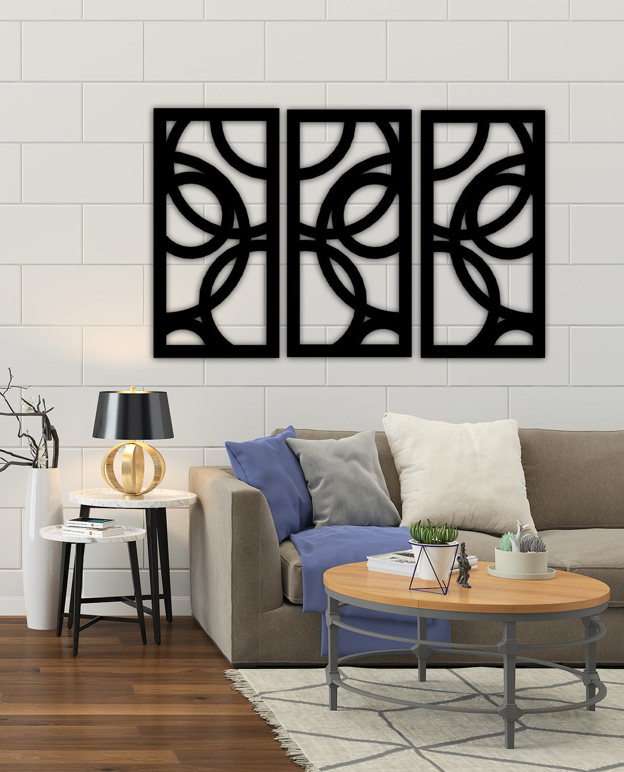 2 cm derinlik payı sayesinde, her bir dairesel kesişim duvarda kendi gölge izdüşümünü oluşturur. Akşam saatlerinde gelen yumuşak bir ışık ile bu modern metal tablo, duvarınızda adeta yüzen bir mekanizma illüzyonu sunar.